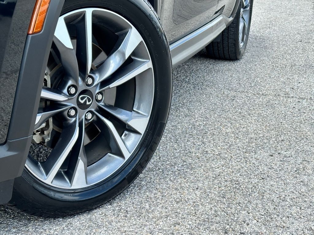 Clean CARFAX. This vehicle comes with the following features and options : Cargo Package (Cargo Mat (Reversible) and First Aid Kit), 3rd row seats: bench, 4-Wheel Disc Brakes, 4.33 Axle Ratio, 9 Speakers, ABS brakes, Air Conditioning, Alloy wheels, AM/FM radio: SiriusXM, Anti-whiplash front head restraints, Apple CarPlay/Android Auto, Auto High-beam Headlights, Auto tilt-away steering wheel, Auto-dimming door mirrors, Auto-dimming Rear-View mirror, Automatic temperature control, Brake assist, Bumpers: body-color, Climate Controlled Front Bucket Seats, Delay-off headlights, Driver door bin, Driver vanity mirror, Dual front impact airbags, Dual front side impact airbags, Electronic Stability Control, Emergency communication system: INFINITI InTouch, Exterior Parking Camera Rear, Floor Mats w/Bench Seats on 3rd Row Tray, Four wheel independent suspension, Front anti-roll bar, Front Bucket Seats, Front Center Armrest, Front dual zone A/C, Front reading lights, Fully automatic headlights, Garage door transmitter: HomeLink, Heated door mirrors, Heated front seats, Heated steering wheel, Illuminated entry, Knee airbag, Leather Shift Knob, Leather steering wheel, Leather-Appointed Seating Surfaces, Literature Kit, Low tire pressure warning, Memory seat, Navigation system: INFINITI InTouch Navigation, Occupant sensing airbag, Outside temperature display, Overhead airbag, Overhead console, Panic alarm, Passenger door bin, Passenger vanity mirror, Power door mirrors, Power driver seat, Power Liftgate, Power moonroof, Power passenger seat, Power steering, Power windows, Radio data system, Radio: AM/FM Audio System, Rain sensing wipers, Rear air conditioning, Rear anti-roll bar, Rear reading lights, Rear seat center armrest, Rear side impact airbag, Rear window defroster, Rear window wiper, Reclining 3rd row seat, Remote keyless entry, Security system, Speed control, Speed-sensing steering, Speed-Sensitive Wipers, Splash Guards (Set of 4), Split folding rear seat, Spoiler, Steering wheel memory, Steering wheel mounted audio controls, Tachometer, Telescoping steering wheel, Tilt steering wheel, Traction control, Trip computer, Turn signal indicator mirrors, Variably intermittent wipers, Ventilated front seats, and Wheels: 20" x 8J Sporty Machined Aluminum Alloy.